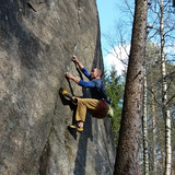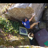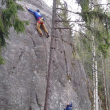 Utspritt område nära Bergafjärden med några boulders och en liten repvägg