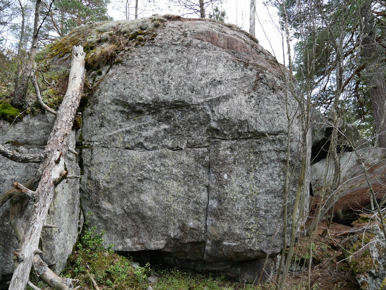 Start from the rock on the left and continue to the main face. Top-out from the Maustemakkara