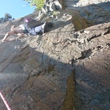 Längst till höger finns det ett block som ser lite skräckinjagande ut längst ut på kanten. Det var kontrollerat med spett när klippan utvecklades, men kom ihåg att årstiderna kan förändra stenens hållfasthet. Gör alltid en egen bedömning först.