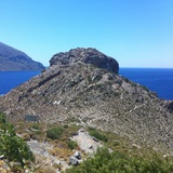 Name given after the Byzantine fortress ″Kastelli″ ruins of which exist at the top of the hill. Steep slabs with great views and a good spot for hot days. Good crag for kids.