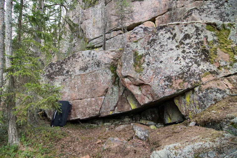 Sit start on the left rock. Up and traverse across to the right rock around the corner. Top out on right rock.
