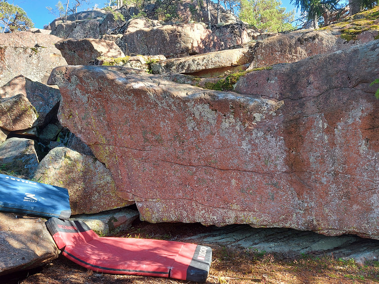 Stand start. Traverse left and top out.