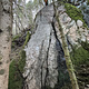 Sva/riss. Ca. 5 m høyt. Kjip landing midt mellom to furutrær. Sleip nedklatring - en kan med fordel rigge til tau for rap...