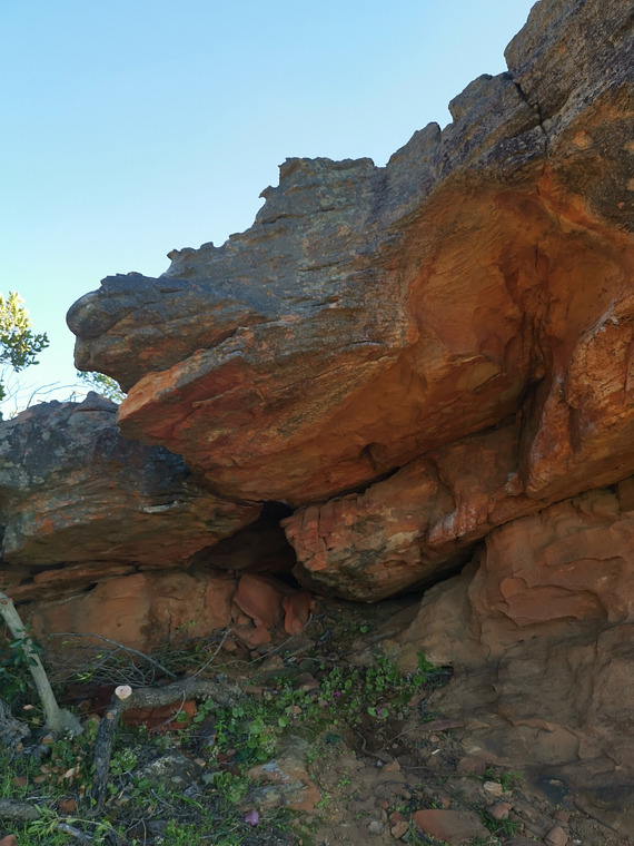 Start with both hands in the hole in the roof. long move to the lip to crimp. mantle out without using the rocks to the left or right of the roof.