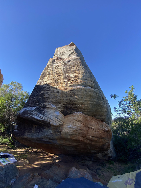 Start with slopen high rail on left side of the big prow/arrete. Climb straight up along the left side of the prow.