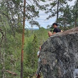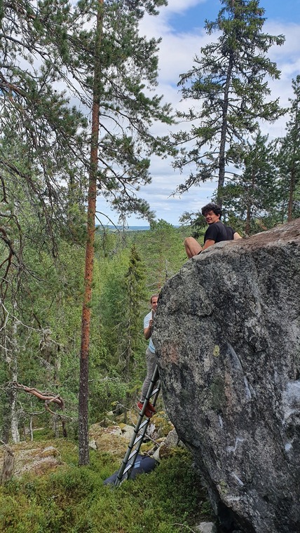 Klutmarkberget is a newly developed small area with all problems in walking distance to each other. It is a 15 minute drive from the center of Skellefteå to the parking place, followed by a 5 min walk on a forest path up the hill. The crag has big boulders, wall-like features and a nice view. In July and August really good blueberries can be found. More options for development exist (20ish problems).