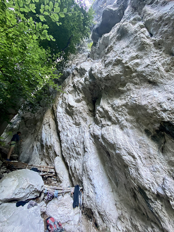 Short and hard ends on the ledge at the fixed quickdraw.