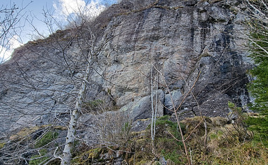 Parker på lomme i enden av gamle brandalsvegen gå til bom og følg blå merket sti opp til klippen, er klatring fra grad 4 til 8b artig flott klatring