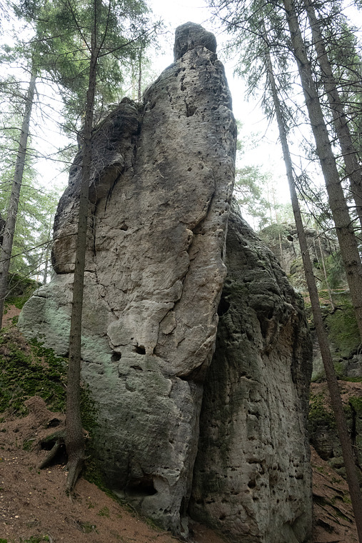 SZ stěnou západního pilíře k trhlině a podél ní na pilíř. Cestou "Hopsa hejsa do Brandejsa" na vrchol.