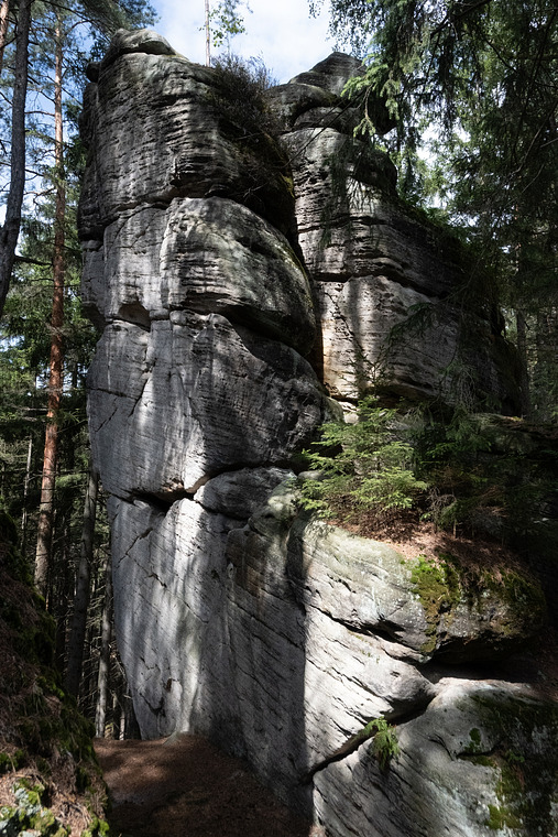 JZ stěnou na blok u jižní hrany a JV komínem na vrchol.