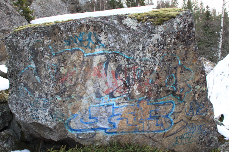 Long time ago, satte 6A då men 6B är kanske mer korrekt. Kändes halkig nu men ny graffiti (2015)