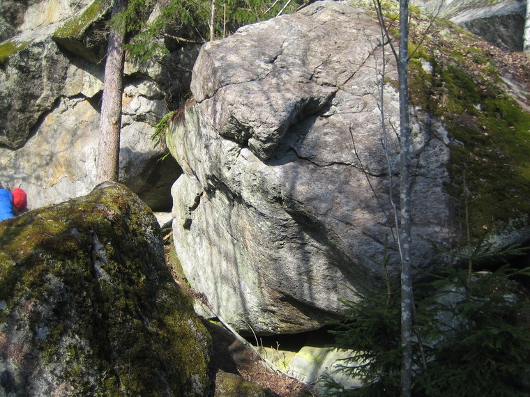FA-stöld, svårt att inte ta i stenen under med benen. Kändes som 7A+ i solgasset så jag tror att 7A kan vara skapligt i grad.