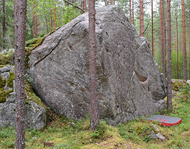 Stand start, hands from small incut crimps. Do not use the adjacent stone.