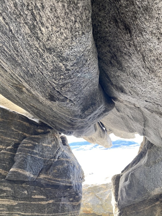 Burly boulder which starts under the boulder, Needs more brushing and has a narrow exit :-)