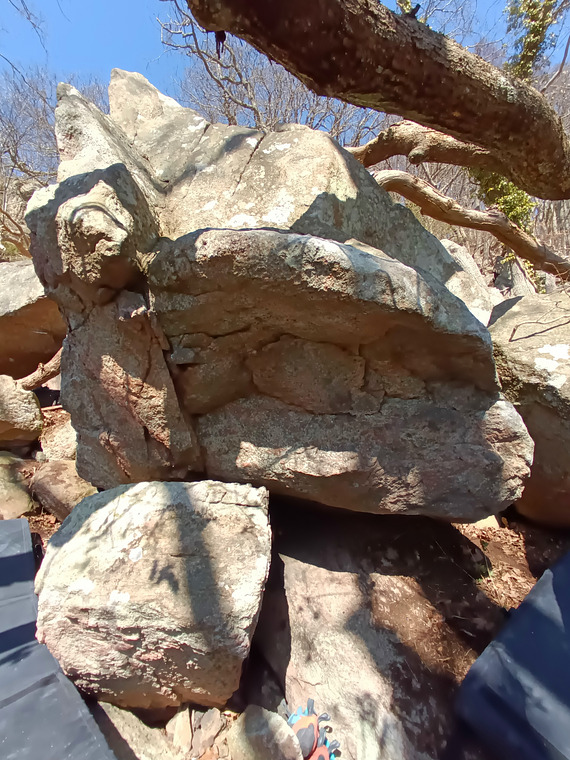 Sitt start längst till höger på stenen. Travers över läppen bort o toppa rakt upp över läppen.