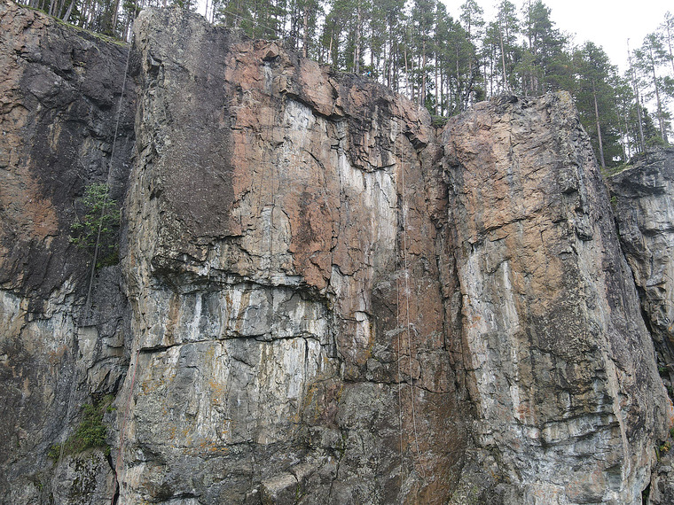 Lower all the way past the upper pitch down to a big shelf (not the ground) to an anchor and start here. A slab with good holds. Ends in another anchor where "Altaret" starts.