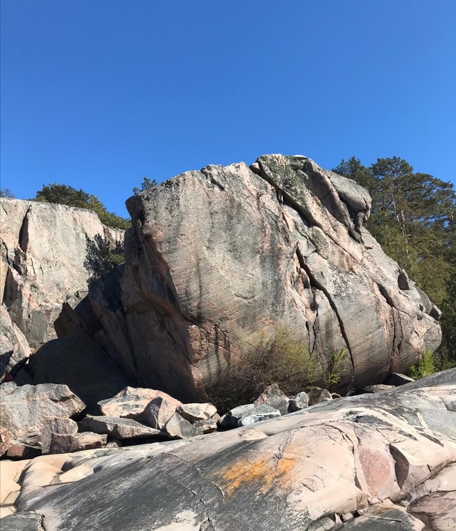 I did a boulder version of the route. Topping to the obvious sharp edge at the end of the arete. A nice boulder in stunning surroundings.