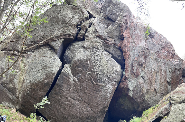 The wide crack on the opposite side of Kodiak. Trad-anchor needed for belaying second.