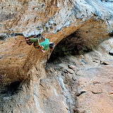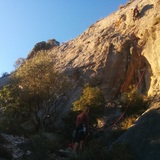 Continue 200 m through the vineyards following the dirt road. At the end, go down on the right side through the field in direction of the river. You will end up on a severely damaged road by passed floading. Take a left and follow this path until you have to turn left again. After a coupleof meters, the path goes uphill and you will see the crag straight ahead.