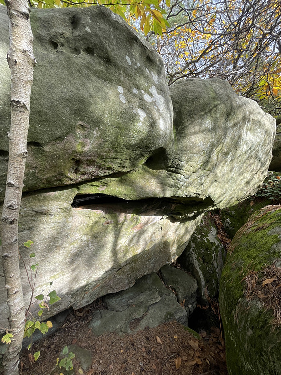 Same start as Prends la Quille. Stand start with jug. Traverse right underneath roof and climb up in the middle of the boulder right of the "crack"