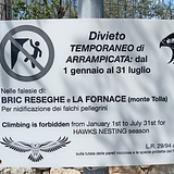 ⚠️Climbing has been restricted during hawk nesting periods from 01/01 to 31/07 for BRIC RESEGHE and LA FORNACE, and it's permanent for the right part of CASA DEL VACCHE' (after the line called Peter Pan)