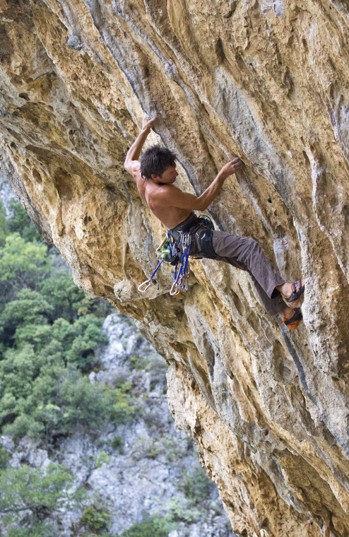 Climbing has a bit of everything from low beginner grades to hardcore 8-figures on tufa caves. The rock is excellent quality limestone ranging from compact grey slabs to blue vertical faces and orange tufa ornate ceilings.