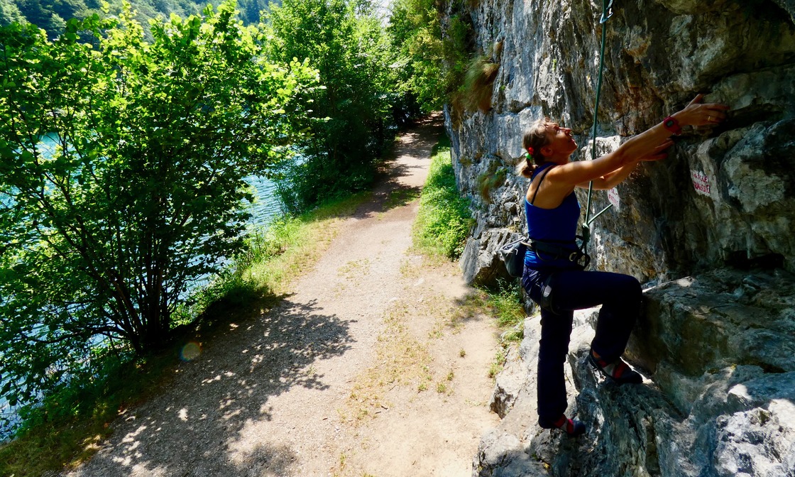 The boulder area is small but has some nice problems. Difficulties ranges from 5 to 7C. Best conditions during the mid seasons, best vibes during Summer when you can by having a swim in the lake.