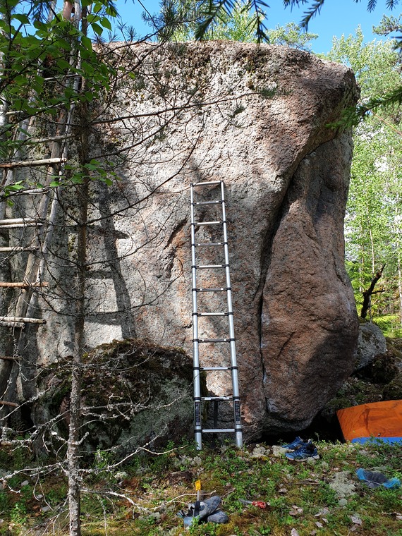 Старт сидя, руки на трещине слева. Будьте осторожны на вылазе: поскользнулся, и писец=) - очень высокий камень