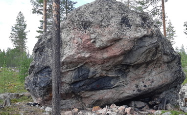 I believe that the block is somekind of daytrip place, as there is firepalce underneath, and i have found stories of it from facebook group. Two easy sides of it where quite clean because people climb to the top when visiting there. Done so atleast for 55years. So if there is other people, behave, and try open the idea of our hobby nicely.
