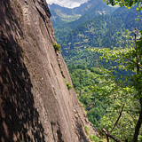 Piccola e tranquillissima falesia, con vie facili di placca su bella roccia lavorata, con intrusioni di quarzo.