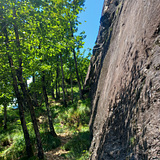Small and very quiet crag, with easy slab routes on beautiful textured rock with quartz intrusions.