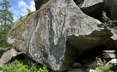 Parcheggiare presso il rifugio le fonti minerali e proseguire a piedi lungo la strada che porta alla diga. Al primo tornante, di fronte alla casa nel bosco, prendere il sentiero che sale verso i blocch... Read more