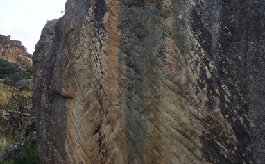 Walk: 1. For the Upper Sectors: Walk straight down following the cairns. 2. For the Lower Sectors: Walk left across the field and down a gulley and head straight down towards a lone boulder in the field. Continue past through a narrow and then you'll see the large boulder down and right, this is the start of the first sector.