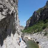 To cross the Verdouble, we usually ford under the sectors A corps et cries, Balcony on the right, the Beach. For the more adventurous who do not want to take off their shoes, you can cross dry from rock to rock with well-exposed jumps under the Balcony sector on the left.
