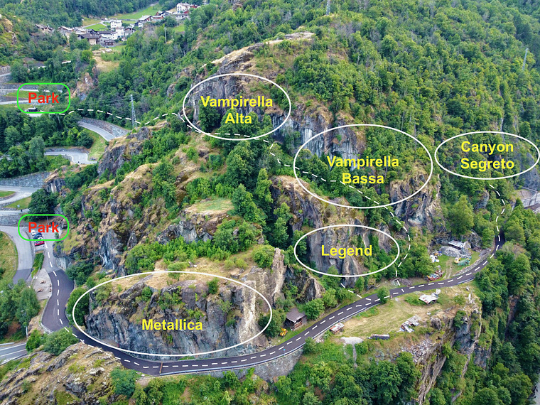 • Canyon Segreto: il settore più nuovo, con 10 vie dal 5a al 6a, oltre ad alcuni progetti in corso.