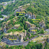 • Metallica: il settore più grande, con oltre 50 vie che vanno dal 4c all'8a. Il suo avvicinamento breve e la base comoda, lungo una strada asfaltata senza traffico, lo rendono una delle zone più popolari, adatta anche a famiglie con passeggini.