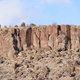 climb through the choss layer to a double crack in the soft dihedral, slung a tree to anchor