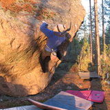 Pasi found the main block some 15 years ago. We had only few poor pads then. Every climb felt hard and intimidating. We didn't bother to climb on the other smaller blocks becaus poor rock quality until recently. Kangasboulderi problems are done in the past. FA dates and climbers have been forgotten. Pohjoinen block has similar history.