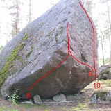 Land owner lives right next to the crag. Please be quiet and behave accordingly. No fires, littering, loud music, shouting etc. Near main block there is a endangered plant Kangasvuokko. Please do not harm the plant! Brush off tick marks after finishing your session.