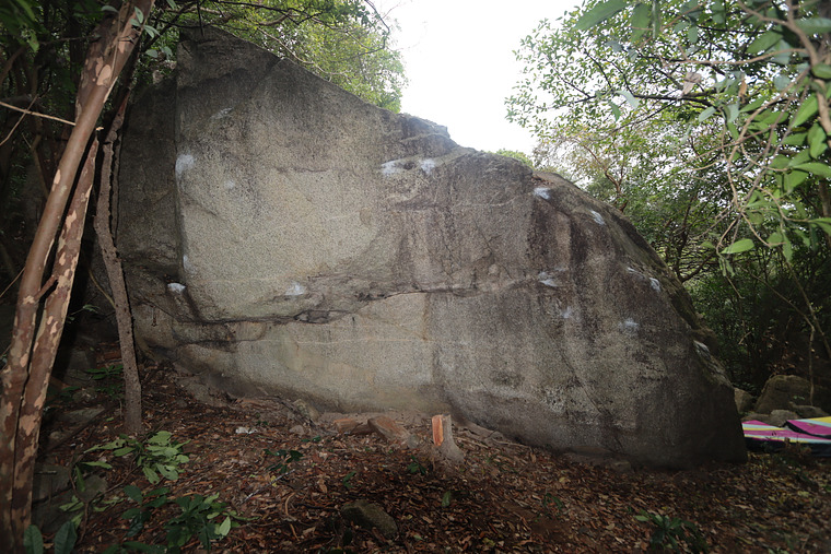 Sit start matched on big slopey holds at the bottom of the right arête. Move up left to the lip of the face and then follow this all the way across the face to its highest point before toping out.