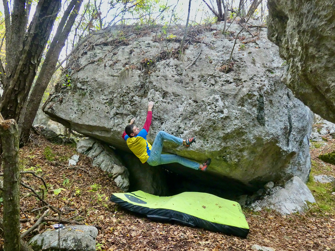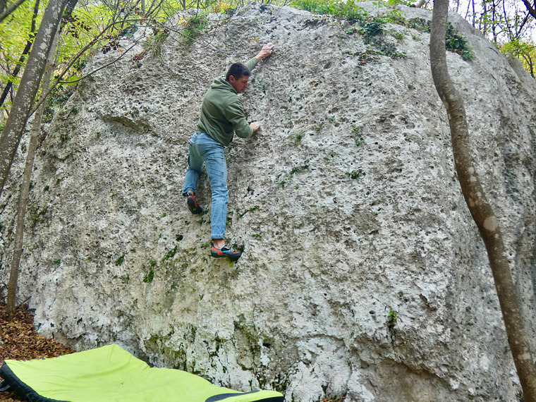 There are few huge boulders collecting over 70 problems ranging from 4 to 7C. The limestone here is great and some lines feature special tiny pockets that are really entertaining.