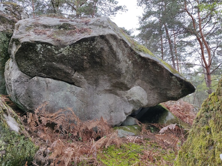 Partir assis sans crash-pad sur la droite du dévers avec deux réglettes évidentes, remonter celui-ci et sortir en réta au dessus.