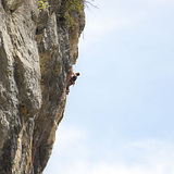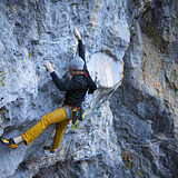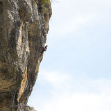 The rock is solid grey limestone, offering technical face climbing on sharp edges and pockets, especially on vertical and slightly slabby walls. The only downside is that some of the older and more trafficked lines may be a bit polished. Protection consists of stainless steel glue-ins and bolts.