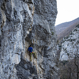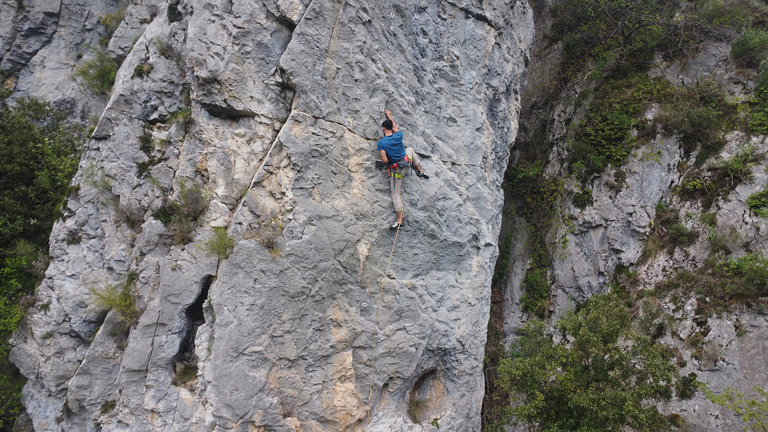L’esposizione a sud-ovest e il clima mite di influenza marittima rendono possibile arrampicare in maniche corte anche durante l’inverno.