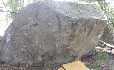 Grymt bra!! Om gamla gubben klagar så hävda allemansrätten. Blocket ligger inne i en skogsdunge långt ifrån bostäder och liknande. Jag har kollat och det finns inget klätterförbud här enligt länsstyrelsen. Låt oss bevara det så!