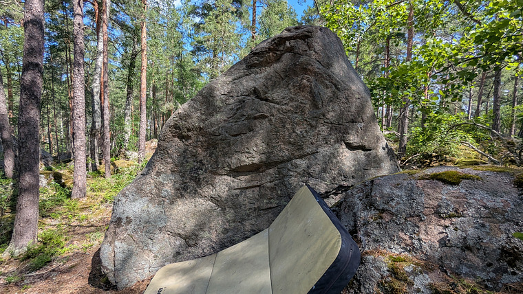 sit start from the left arete, follow the arete, top out on the right of the top