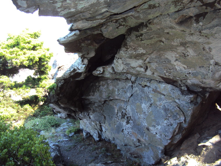 Use the slopers on the inside wall and exit at the middle of the cave.
