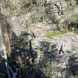 The rock is shaped by water, but still has good friction. The first couple meters of the cliff is on the chossy side, but the rest is of superb rock quality. Belaying base is very comfortable, but only a few meters from the river so it can get noisy when the river is at its peak.
