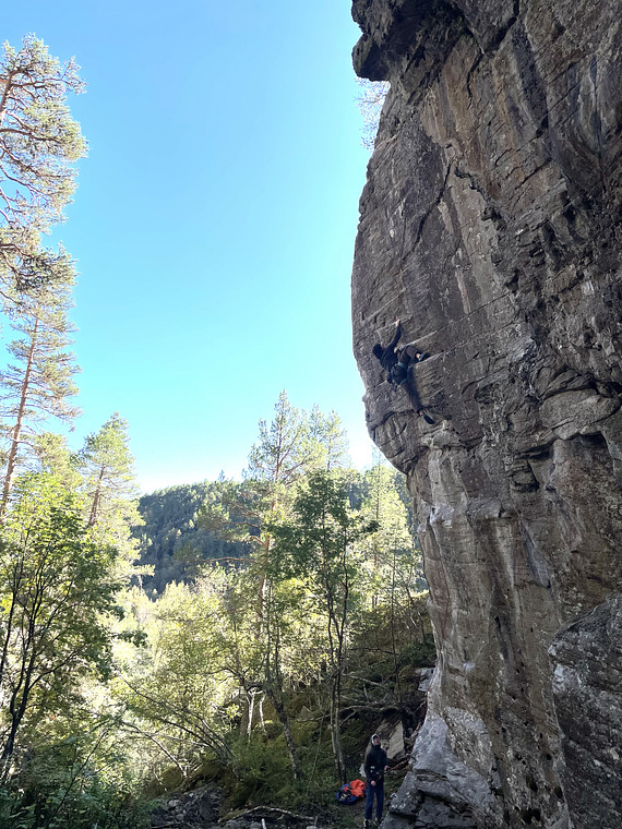 The newest addition to the climbing in Oppdal, quite different than the other crags. With only a few exceptions, the routes here are short, intense and slightly overhanging. Expect a lot of negative holds, ergonomic pockets, scoops and crimps. The lack of incut holds makes for a really technical and condition-dependent style.