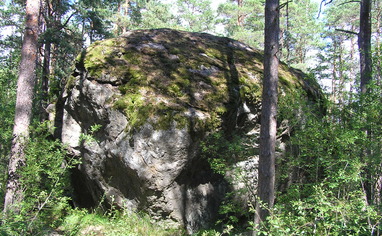 All sides of the boulder are potentially climbable, mostly harder routes. It is wet around the boulder so it is best to climb in the summer.